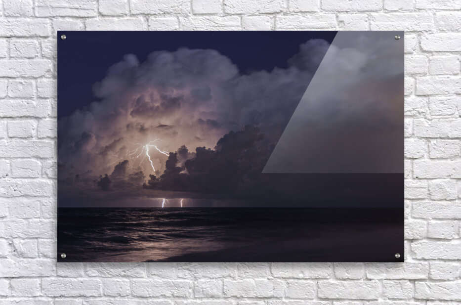 Lightning over the Atlantic  HD Metal print with Floating Frame on Back