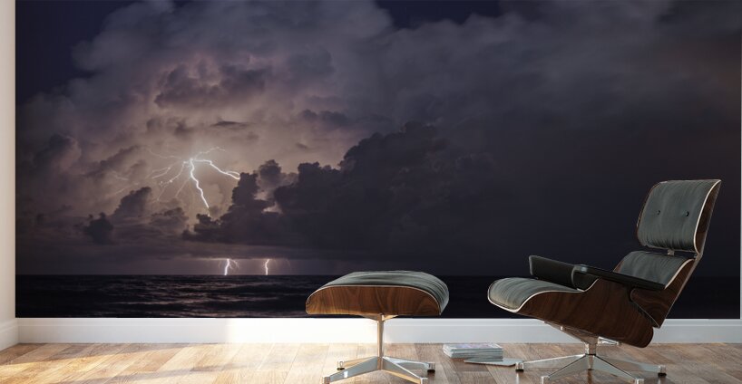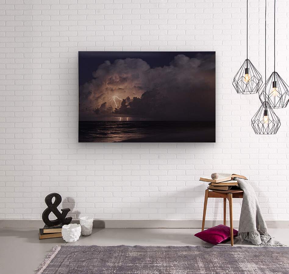 Lightning over the Atlantic  Wood print