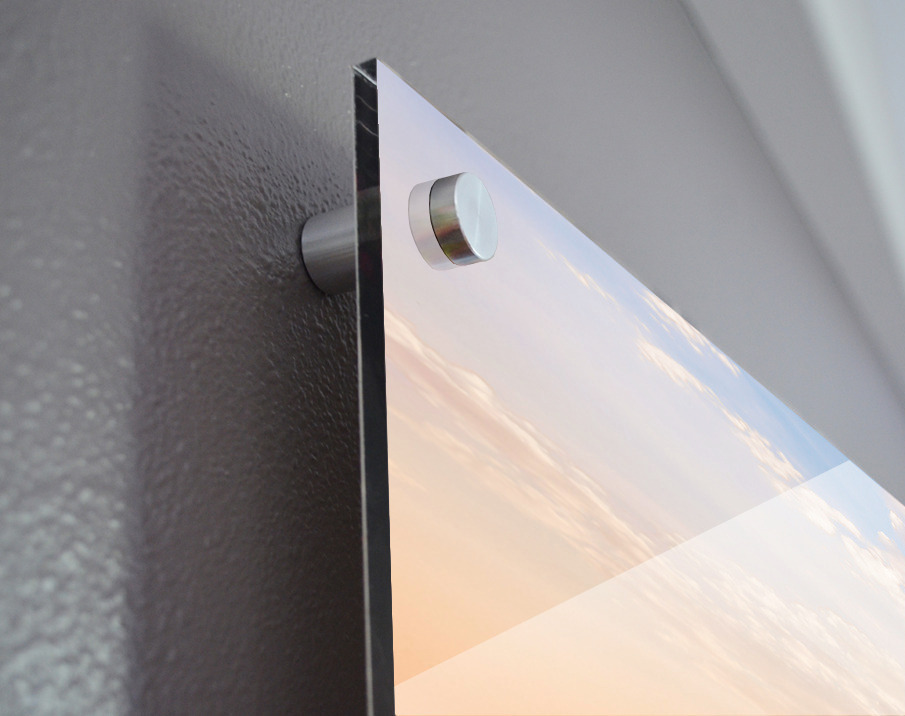 Printed to the edge - Ready to hang - provided with 4 premium polished aluminum stand off ( wall screws and mounting hardware provided )