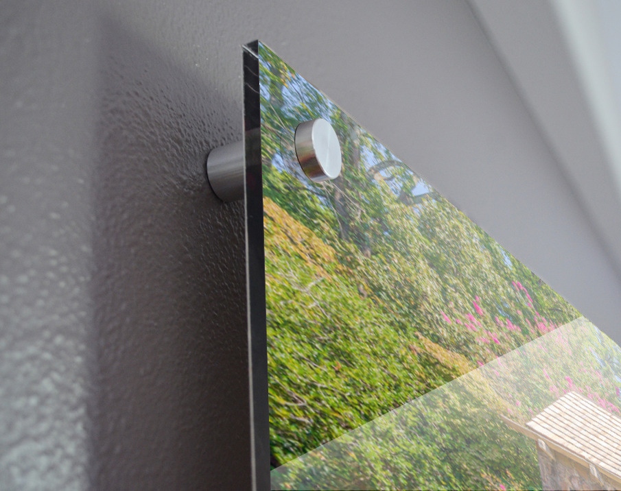 Printed to the edge - Ready to hang - provided with 4 premium polished aluminum stand off ( wall screws and mounting hardware provided )